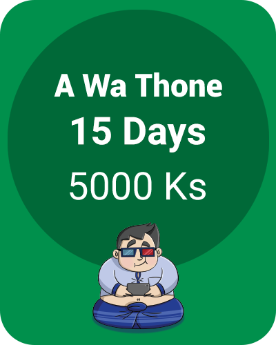 15 Days5,0002.5 MbpsUnlimitedMyanmar Net Application (or) Scratch Card (or) WavePay