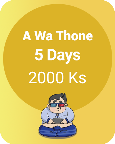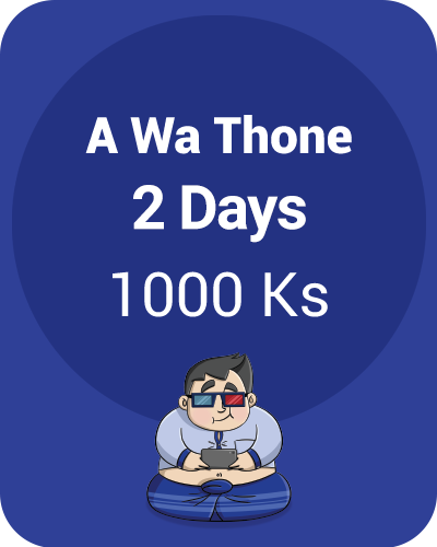 2 Days1,0002.5 MbpsUnlimitedMyanmar Net Application (or) Scratch Card (or) WavePay