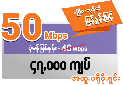 ရန်ကုန်၊ မန္တလေး၊ မိတ္ထီလာ၊ နေပြည်တော်၊ ပျဉ်းမနား၊ ပဲခူး၊ တောင်ငူ၊ မော်လမြိုင်၊ တောင်ကြီး နှင့်မကွေးမြို့များအတွက် ဖိုင်ဘာနှင့် ကြိုးမဲ့ နှစ်လိုင်းလုံးတစ်ပြိုင်နက်သုံးနိုင်သည့် စိတ်အချရဆုံး ဝန်ဆောင်မှု
