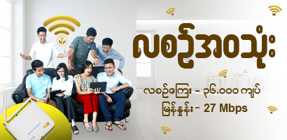 လူသုံးအများဆုံး – လစဥ်ကြေး ၃၆,၀၀၀ ကျပ် မြန်နှုန်း 27 Mbps